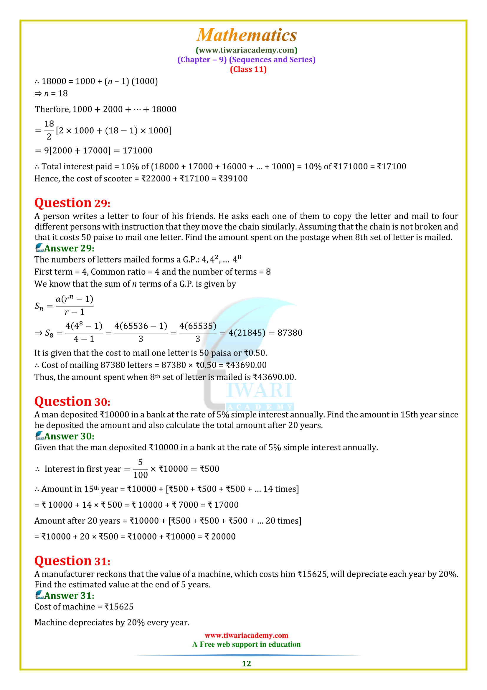 Ncert Solutions For Class 11 Maths Chapter 9 Sequences And Series